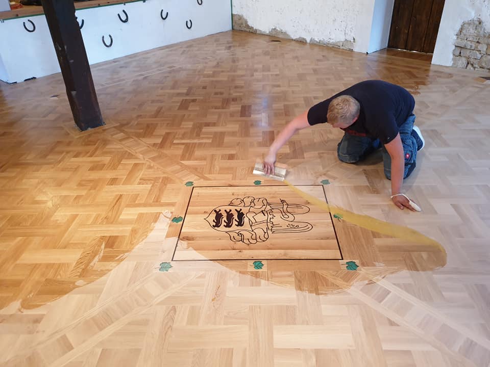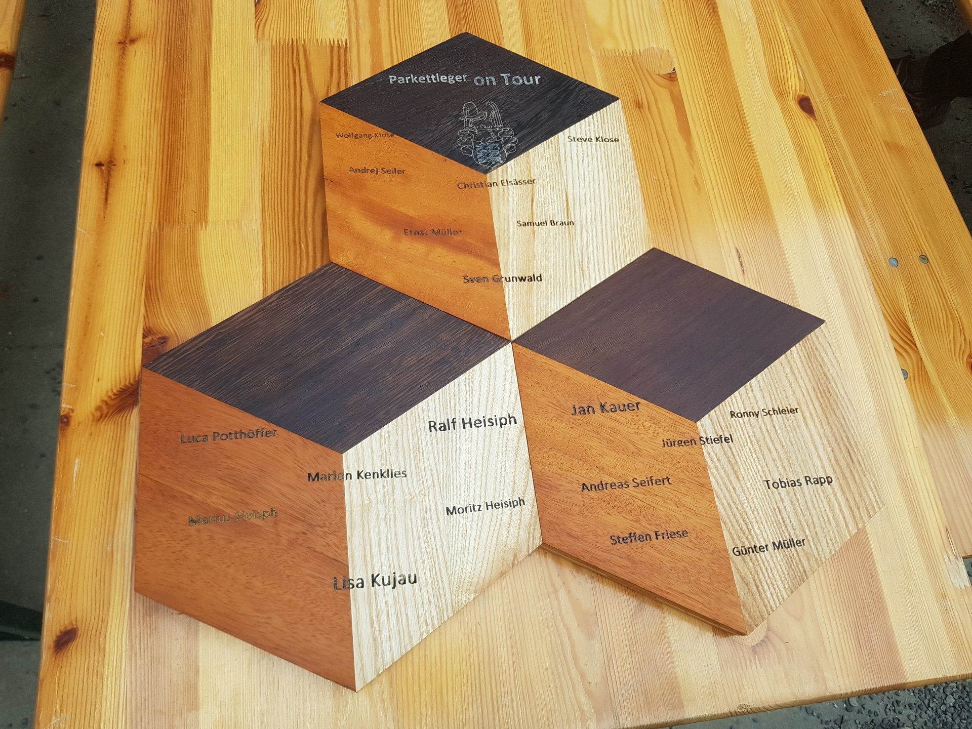 Parkettleger on Tour ist ein gemeinnütziges Projekt zur Förderung des Parketthandwerks. Einmal im Jahr kommen Meister, Gesellen und Auszubildende Parkettleger aus der ganzen Bundesrepublik zusammen, um ehrenamtlich einen außergewöhnlichen Parkettboden zu erstellen.